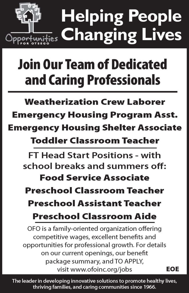CAREER OPPORTUNITIES IN & AROUND OTSEGO COUNTY, NY