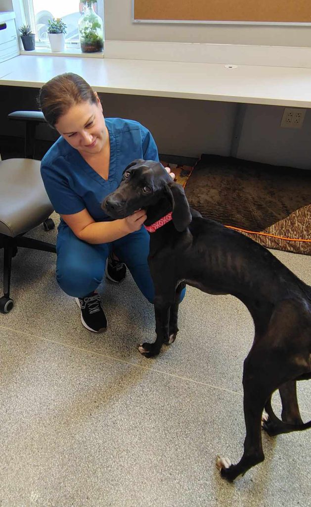 The pair of Great Danes was transported by SQSPCA staff immediately to the Cornell University Companion Animal Hospital in Ithaca, where they received emergency treatment including intravenous fluids to correct their severe dehydration, according to SQSPCA Animal Health Coordinator/Licensed Veterinary Technician Sara Haddad. Oscar and Belle were kept in Ithaca overnight before being admitted to the animal shelter.