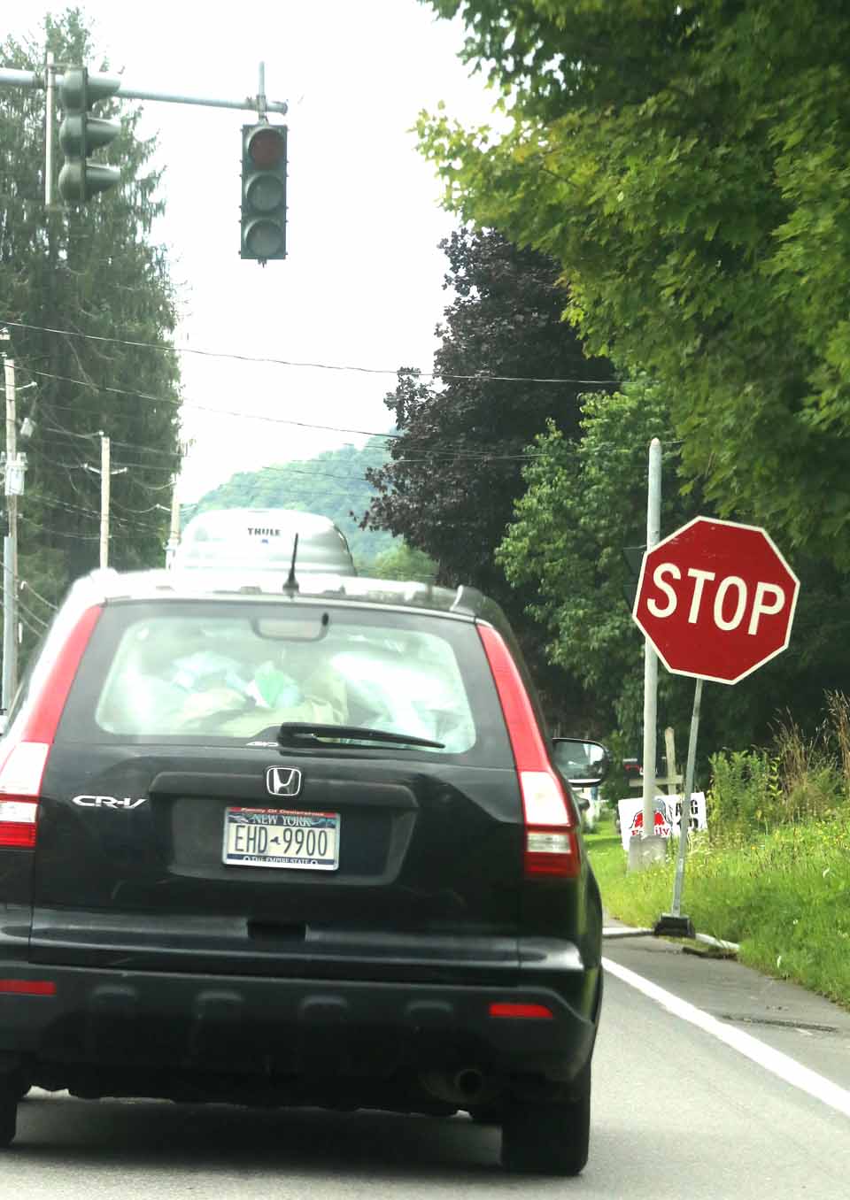 The traffic signals at Cooperstown Commons and Dreams Park were both out, with traffic being regulated by temporary stop signs set up for that purpose.