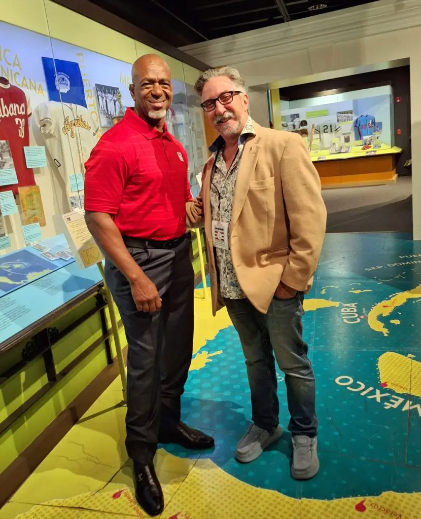 Writer Charlie Vascellaro (right) with 23-year major leaguer Julio Franco, who retired at the age of 47 in 2007. A career .298 hitter, Franco compiled 2,586 hits and led the American League with a .341 batting average for the Texas Rangers in 1991. (Photo provided)