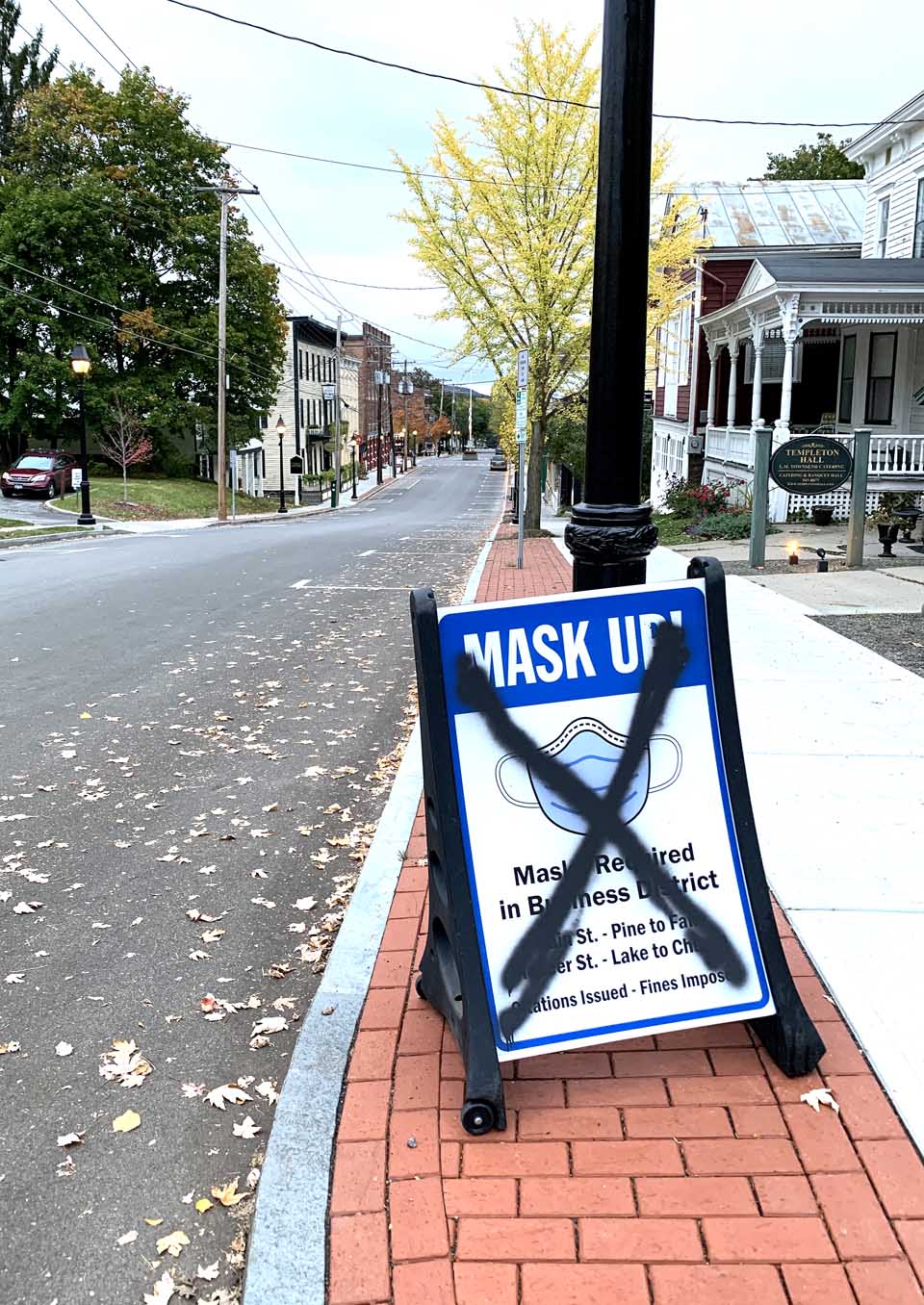 Five of the signs were 24- by 36-inch sandwich boards at the entry to Cooperstown's downtown, designed to alert visitors that mask-wearing is required on Main Street sidewalks between Fair and Chestnut streets, and on adjacent sections of Pioneer Street.