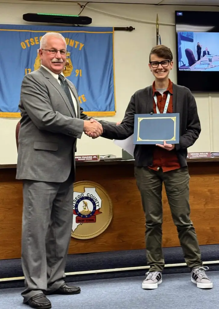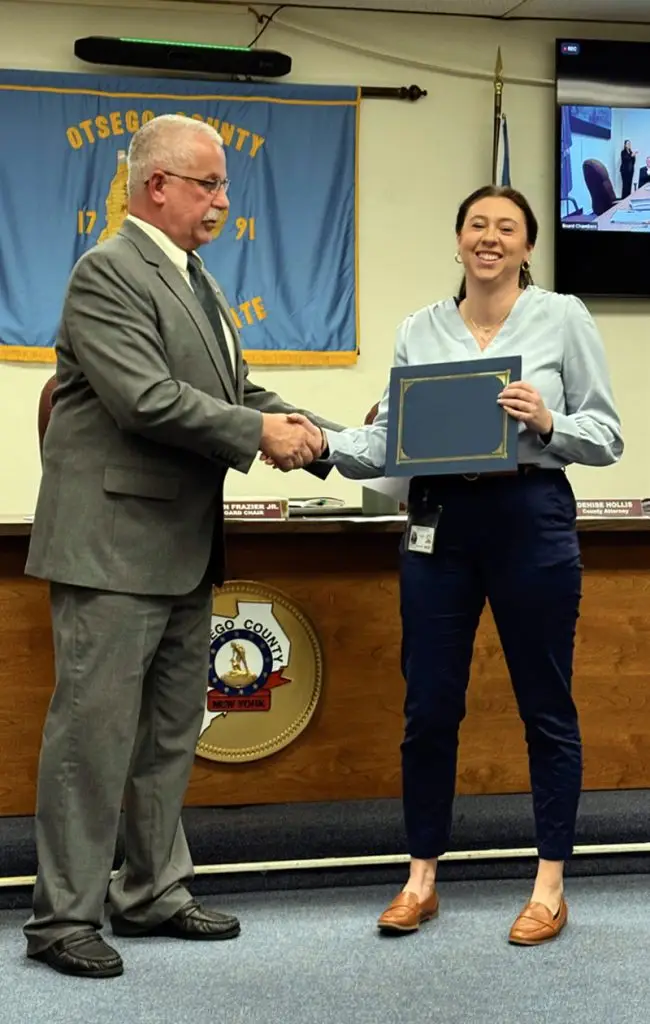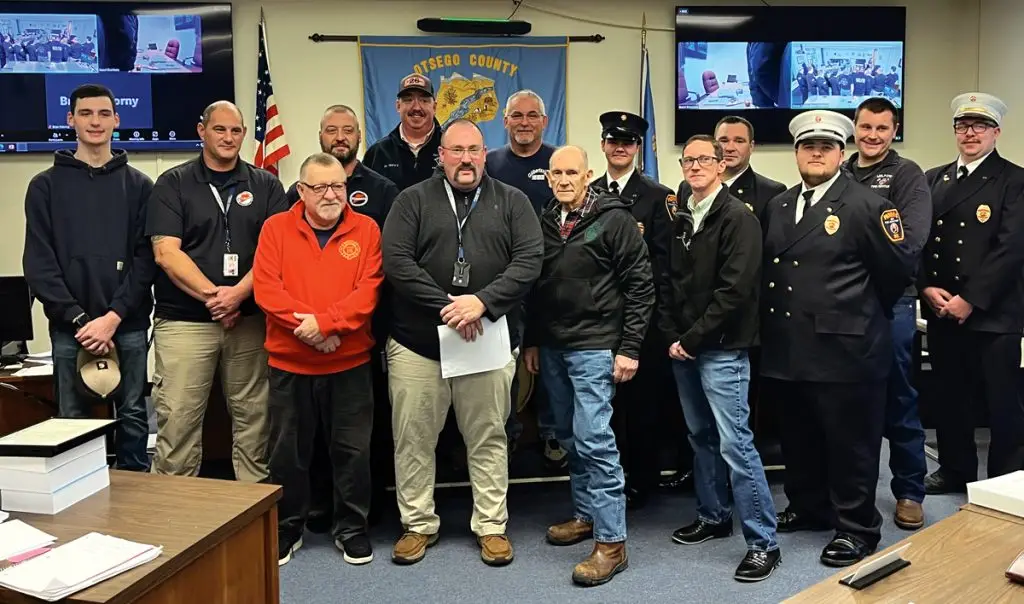 Deputy Fire Coordinator Jeremy Hilton and Assistant Emergency Services Coordinator Damon West were also recognized, along with representatives from fire departments in Gilbertsville, Milford, Morris, Mount Vision, Otego, Richfield Springs, Schenevus, West Edmeston and West Laurens.