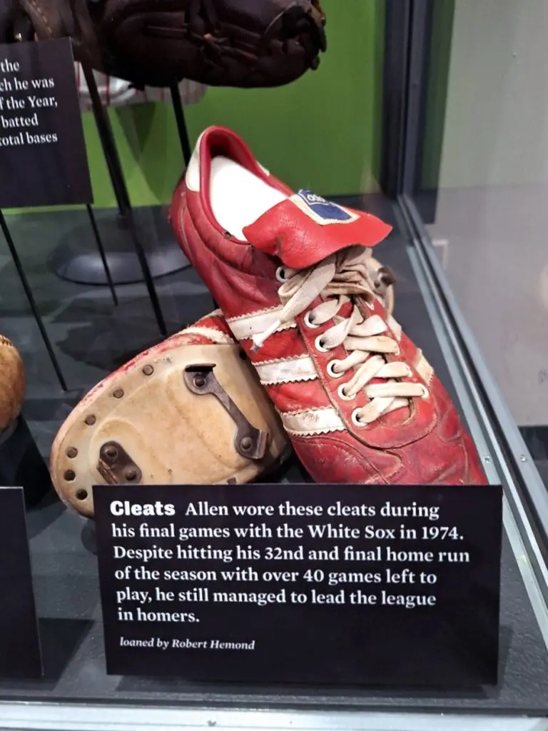 Allen’s red and white striped Adidas cleats are on display in the National Baseball Hall of Fame and Museum’s 2025 “New Inductees” exhibit on the hall’s second floor. Just like nearly every artifact in the hall’s collection, there is a back story to Allen’s cleats. Although they can’t tell us what happened on the day he decided to walk away, there is someone who can.