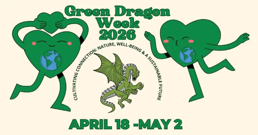 This year’s Green Dragon Weeks lineup also includes nature walks and hands-on activities aimed at encouraging small but meaningful actions. For instance, there are “green commute” days on Thursday, April 23 and Thursday, April 30, which offer incentives of free coffee and donuts to students who walk, bike, carpool, or take the bus to campus on those days.