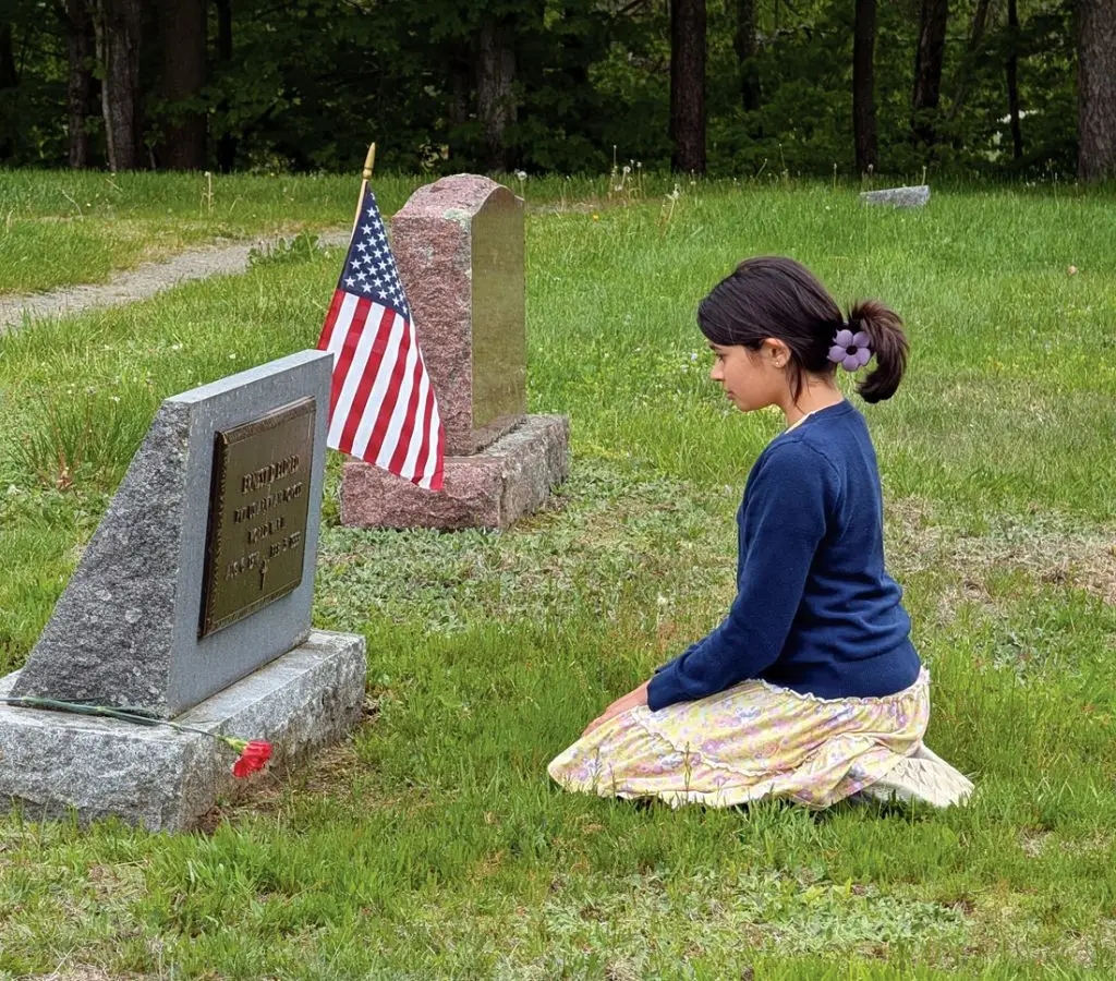 LAURENS—Laurens Central School fifth- and sixth-graders commemorated and honored the brave military men and women who served our country by placing long stem red carnations on veterans’ graves in the Laurens Village Cemetery and Elm Row Cemetery prior to Memorial Day 2025. This project was sponsored by the Laurens American Legion Auxiliary with assistance from Laurens American Legion members. Above, fifth-grader Hera Baker pays tribute to a fallen hero at Elm Row Cemetery.