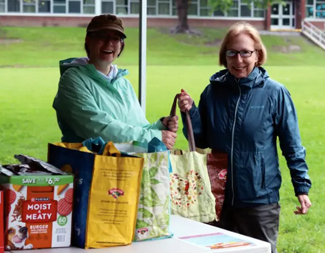 With extensive rain throughout much of the day on Saturday, May 31, it would be enough for many to throw in the towel and stay inside all day. This was not the case for Elayne Mosher Campoli and Emily Ward, council representative and resident of the First Ward of Oneonta, respectively. These two endured the day’s showers to run the First Ward’s community food drive from 10 a.m. to noon, just outside of Valleyview Elementary School. Their setup consisted of a humble pop-up tent alongside Hudson Street, where they collected and organized food donations from those in and outside of the First Ward.