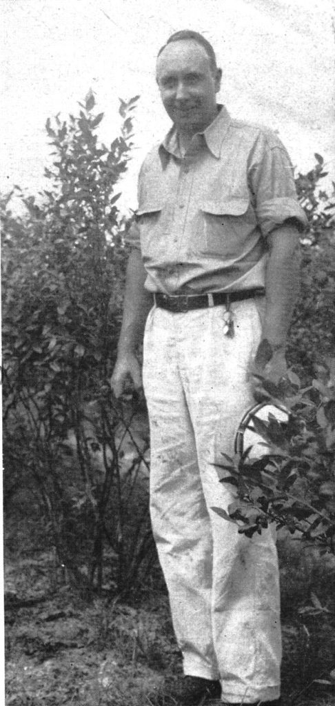 “Over seventy years of cultivating blueberries in Southeastern North Carolina: Harold Graham Huntington was born in Montclair, New Jersey in December of 1897. His father was in Dutch Guiana (now Surinam) working as a mine development engineer and couldn’t return due to the difficulties leading to the Spanish American War. Harold’s father returned later, taught physics, and was a lecturer in the New York City area. During this time, he invented a color mixing machine for use in teaching physics and continued a lifelong interest in botany, especially exploring bogs and swamps for orchids.