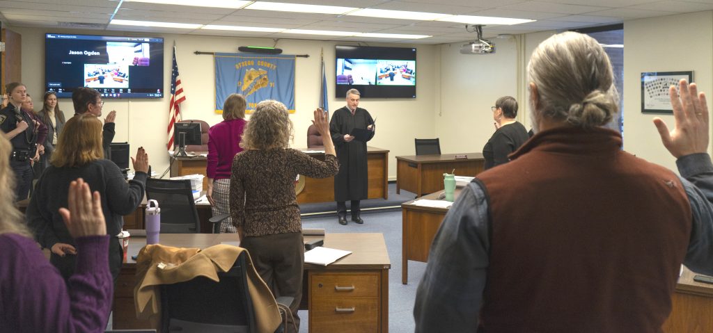 Edwin Frazier Jr., a Republican representing Unadilla on the Otsego County Board of Representatives, was unanimously re-elected as county board chair at the body’s first meeting and swearing in for the new term on Wednesday, January 7. Representatives also unanimously reelected Republican Margaret Kennedy, representing Hartwick, Milford, and New Lisbon, as vice chair.