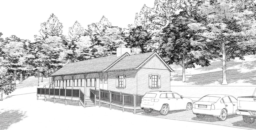 - The pavilion building would be updated and a deck with a lake view and ADA accessible ramps added. The building has always lacked its own bathrooms, making it less appealing for gatherings, so an ADA accessible one would now be added.