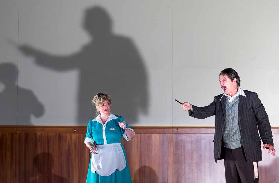 Director Christopher Alden has chosen instead to set the tale in the bright, featureless space of a provincial church hall as dull as it is incomprehensible. The time is post-war Britain, wobbling uneasily between Harold Macmillian and Carnaby Street. The numerous Sondheim fans in the opening audience – many in full Victorian regalia – were not amused. The blank walls also serve to highlight unfortunate longueurs in Hugh Wheeler’s book, particularly in the first act.