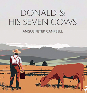 I asked the nice person at the front desk where I might find books by Scottish writers. She directed me to a small room in a corner of the second floor. There were books on several shelves, but many were displayed on a small table in the middle of room. While circling the table checking out titles, one just really grabbed me: “Donald & His Seven Cows,” by Angus Peter Campbell. I just knew I had to have it.