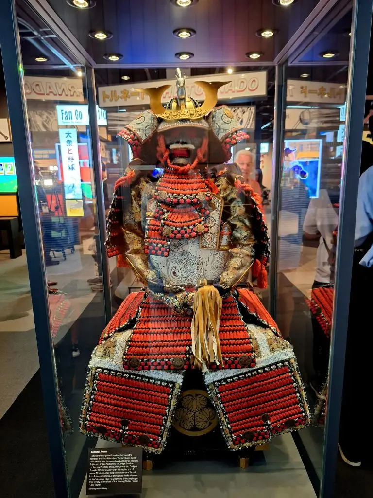 More than two years in the making, the Yakyu exhibit is the first of its kind dedicated to telling the story of the cultural exchange between Japan and the United States and the countries’ shared national pastime. Visitors to the exhibit are greeted by a samurai suit of armor gifted by Yomiuri Giants owner Toru Shoriki to Los Angeles Dodgers President Peter O’Malley in 1988.