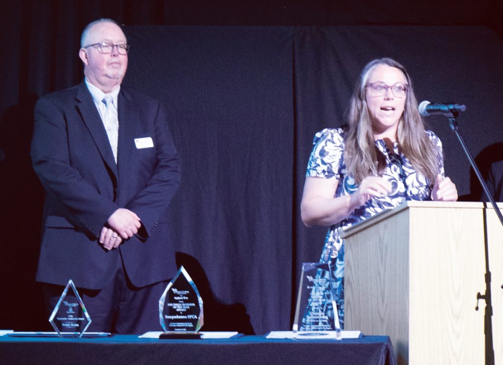 The executive director of the Susquehanna SPCA, Stacie Haynes, accepted the organization’s Small Business of the Year Award. The award description cites the transformation the organization has gone through over recent years, including moving their location (and all their animals) in June 2021.