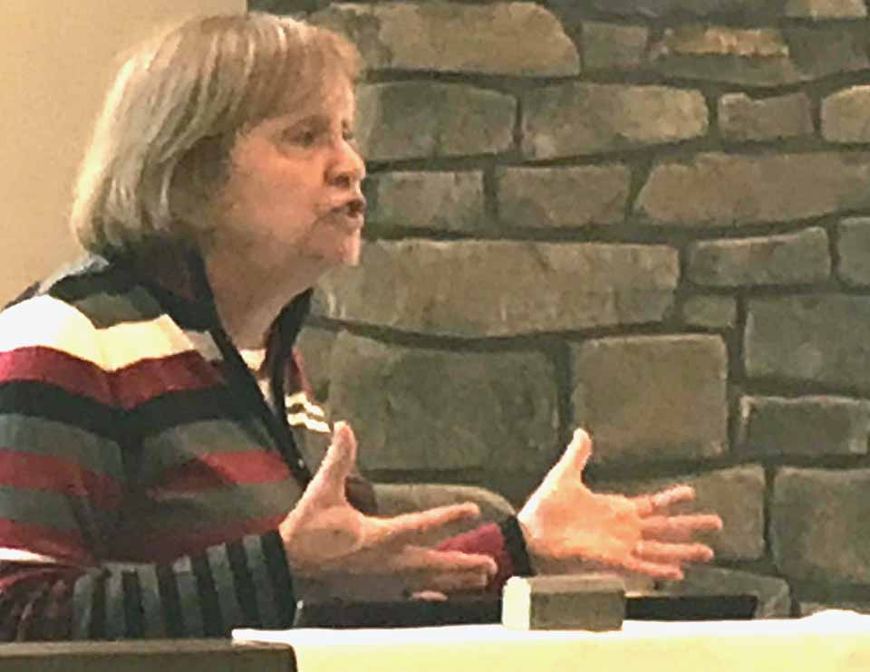 How can we debate the issues of our Democracy in a civil way, particularly in the current atmosphere? Today, that was the question before “A User’s Guide For Local Democracy,” a morning of presentations and discussion in Springbrook’s Family Center, organized by the Cooperstown and Oneonta chapters of the League of Women Voters. Tom Pullyblank, above, Catholic Charities director of Planning & Mediation Services, outlined discussion circles – literally, chairs in a circle – and how a moderator can assist a group in reaching a consensus. CGP Professor Will Walker, seated at left, detailed how open-ended questioning has helped his students elicit valuable and detailed oral histories across cultures. He also introduced students Georgia LeMair and Kirbie Sondreal, seated to his left, who have used Walker’s methods to develop community conversations: In Cooperstown, for instance, on Women’s Suffrage and the Centennial of the 19th Amendment. Inset is the New York State’s executive director, Laura Ladd Biermann, who conducted a training session on keeping debates on topic. “The moderator is in charge,” she said. “If it gets out of line, you’re the one who has to bring them into line.” Cooperstown’s Maureen Murray and Oneonta’s Steve Londner organized the program. (Jim Kevlin/AllOTSEGO.com)