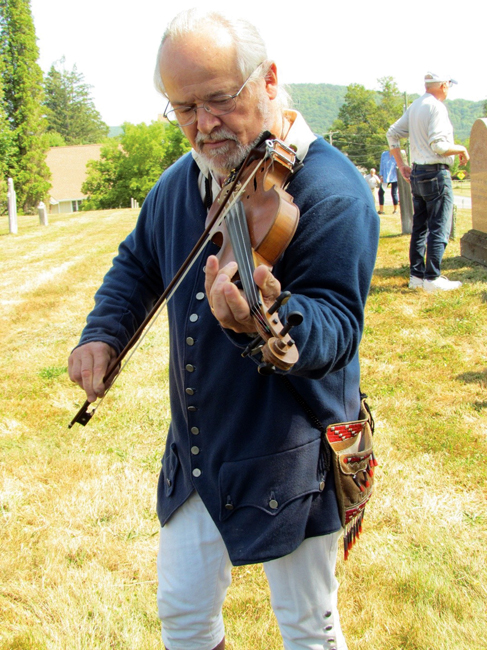 At the Milford Cemetery, the stones of John Campbell and Joseph Vars, Continental Line Patriots, were cleaned and restored, and permanent bronze plaques were installed at each gravesite to commemorate these brave ancestors. A public dedication was held on August 9, and many members of the community came to honor these men.