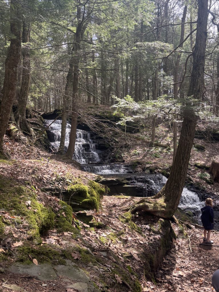 As the group moved deeper into the preserve—a 140-acre parcel maintained by The Nature Conservancy—they examined a variety of tree species and plants, including white pine, eastern hemlock and hay-scented fern. To help the children remember what they were learning, MacLeish shared simple memory tools, such as pointing out that white pine needles grow in bundles of five, which can be remembered by spelling “W H I T E,” one letter per needle.