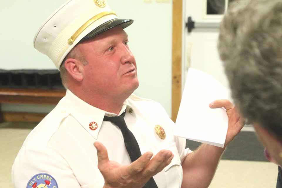 But the evening ended with a reassuring note, as Fly Creek Fire Chief Mike Thayer, in full uniform, went to the front of the room and said of the XNG truck rollover on Route 205 Sept. 5 in the Town of Otsego, “I think it was handled very well.”