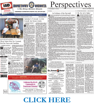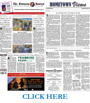 THIS WEEK’S NEWSPAPERS The Freeman’s Journal • Hometown Oneonta October 24, 2024 Front Page Bassett Lays Off 101 Employees as it Addresses $80M Shortfall Under Construction Council Talks Warming Station, Code Blue Alert Accommodation Farmers’ Museum Announces New Name Change Effective Nov. 1 Inside Gilbertsville Man Wins Two Statewide Broadcasting Awards World-renowned Master Kora Player Yacouba Sissoko To Perform County OFA Seeks Aging Advisory Council Members Kassie Nelligan’s Story: A Five-Year Breast Cancer Journey Energy Sector Job Training Available News…